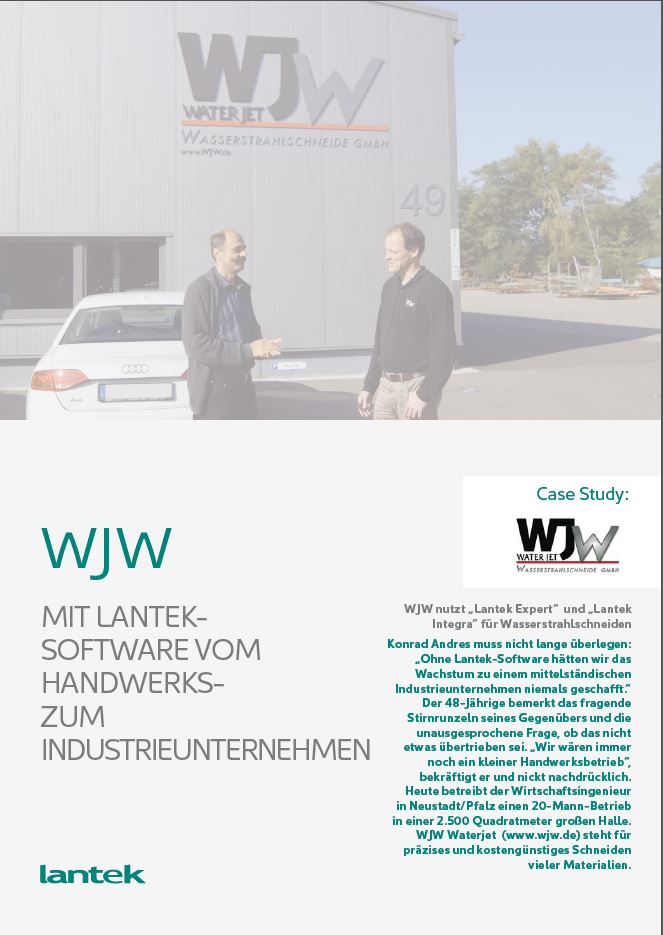 WJW Waterjet (www.wjw.de) steht für präzises und kostengünstiges Schneiden vieler Materialien. WJW besitzt ein System von TCI sowie mehrere Schneidemaschinen des schwedischen Herstellers „Waterjet Sweden“, der anders als die meisten anderen Maschinenhersteller keine eigene Software anbietet.