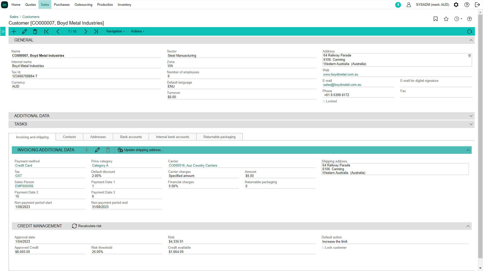 各企業は、それぞれ独自のリスク管理限度額を持っています。受注書、納品書、請求書など、販売要素が登録されるたびに、システムはその要素を現在の総リスクと照合し、それに応じてアドバイスします。