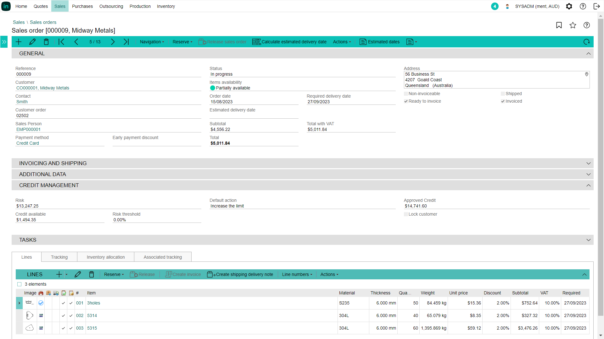 Lantek Integra Sales は、登録されたすべての販売請求書を管理します。請求書の発行は、セールスオーダー、納品書、またはオンデマンドで行うことができます。